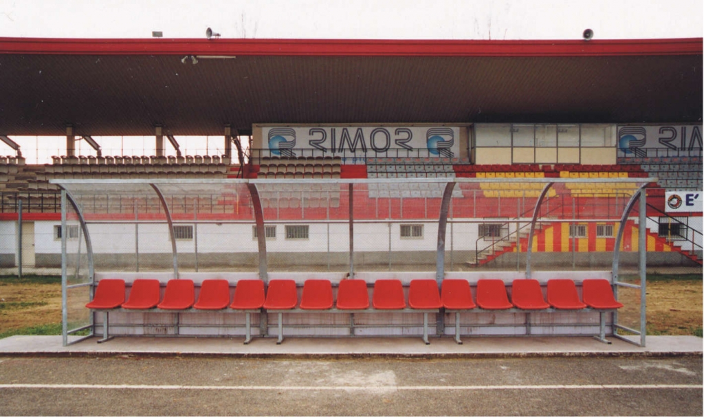 Futbalová tímová striedačka so zliatinovou hliníkovou konštrukciou, s prierezom konštrukcie 50x30mm. Má nepriehľadné polykarbonátové panely s hrúbkou 4mm a polypropylénové oblé sedadlá. Šírka modulu 6m, 12 sedadiel.